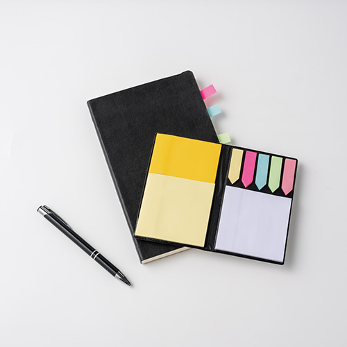 色々なサイズのふせんをPVCカバーで包みました。ギフト感のあるふせんセットです。