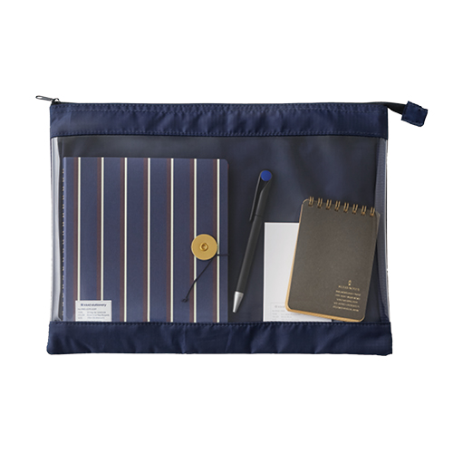 タフでしなやかなテント素材と、視認性に優れたクリアポーチが融合。ちょっとした水濡れから中身を守る撥水加工。
