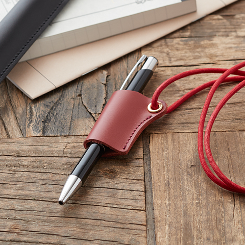 ストラップの先端のホルダーにペンを1本挿して首から下げることができます。常にペンを使用するシーンで機能的に活躍する商品です。