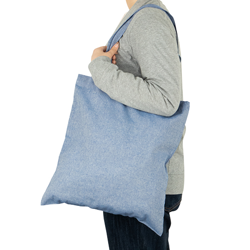 リサイクルコットンを使用し、環境に配慮したSDGsに貢献できるエコバッグです。リサイクルコットンとは紡績工場や縫製工場で廃棄されていた綿の裁断くずや落ちわたを集めて裁断して作った糸になり、すでに色がついている端切れをリサイクルするため、再び染色する工程が不要で、CO2の排出量や水の使用量を減らすことができ、環境に優しい素材です。SDGsの取り組みや環境に配慮した企画やキャンペーンのノベルティ・販促品におすすめです。