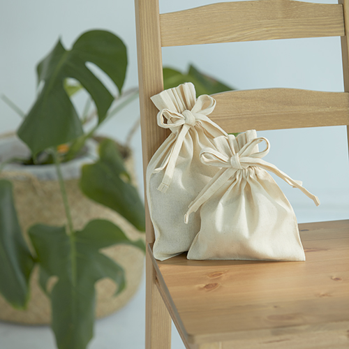 オーガニックコットンを使用した巾着です。ノベルティからギフトラッピングまで幅広く使用できます。オーガニックコットンは農薬や化学肥料を使用せず栽培された農地で育てられた綿花のことです。土壌にも優しく、栽培する人たちが安全に働ける環境を守って製造されたSDGsに貢献する素材です。