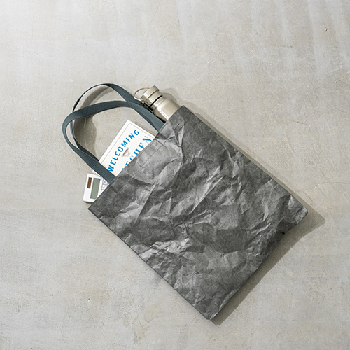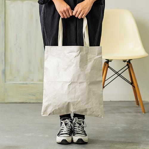 薄くて軽量な上、強度があり耐水性・通気性に優れたタイベック製のトートバッグです。タイベックならではの紙のようなおしゃれな質感なので、ノベルティや販促品のみならずアパレルやカフェのオリジナルグッズとしても最適です。