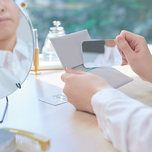 PET製のミラーで裏面にはフルカラーで印刷が可能!カードサイズなのでどこにでも持ち運べ、サッと取り出し身だしなみを整えられます。販促用のノベルティとして人気なアイテムです。