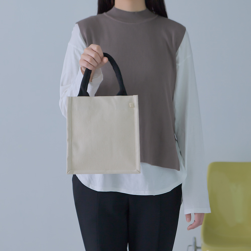 無駄のないスタイリッシュなデザインと実用的な収納力が魅力のバッグです。ランチバッグとしても使えるサイズ感で、ペットボトルや傘なども立てて収納できるスリーブ付き。大きなスリーブポケットには書類を入れることができます。キーホルダーなどを付けられるループ付きなので推し活バッグとしてもご活用頂けます。