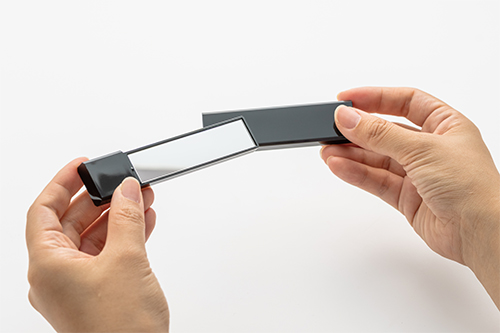 場所を取らないスリムなコンパクトミラー。ポーチにもかさばらず持ち歩きに最適!いつでもどこでもミラーでメイクチェック。